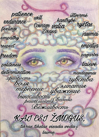 Pamokos patirtis mokiniai įamžino lankstinuke trims kalbomis „Asmenybės charakterio ugdymas ekstremaliomis sąlygomis“. Asmenybės paveikslą sukūrė 10b klasės mokinė Gabrielė Jonė Šamšūraitė.