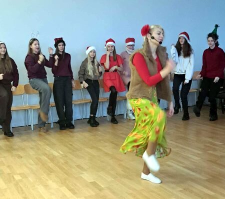 Gruodžio 13 d. gimnazijoje svečiavosi DRAKONIUKO teatro aktoriai, kurie 1a, 1b, 7a, 7b klasių moksleivius pakvietė į nuotaikingas KALĖDINES kultūros paso edukacijas.